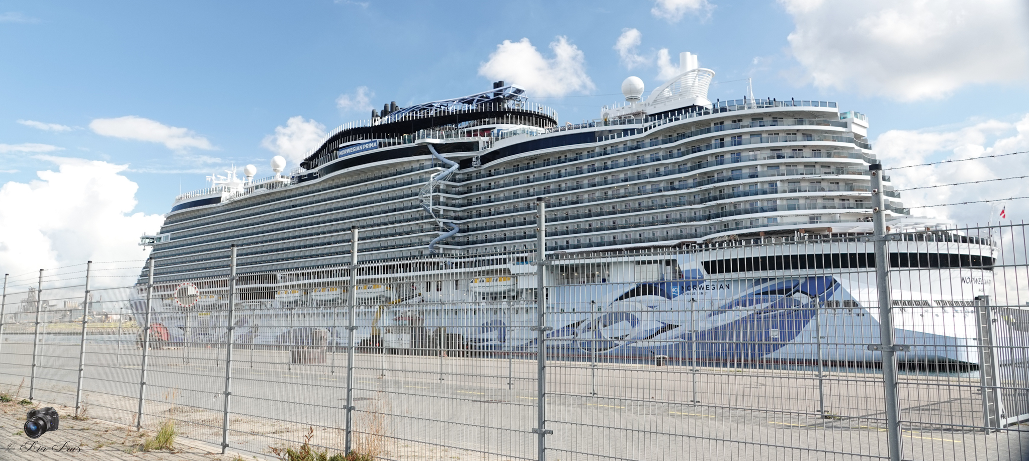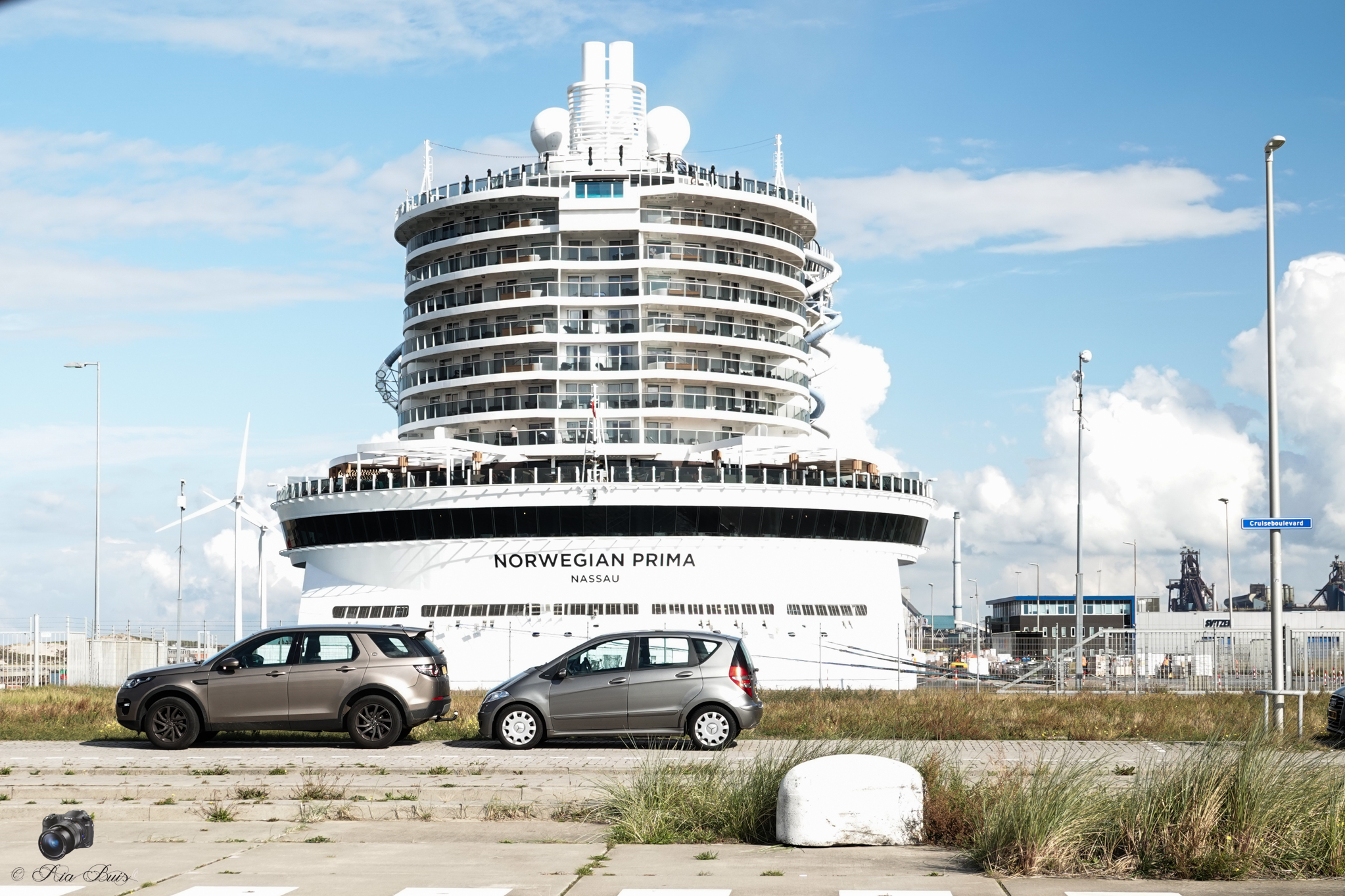 weer een joekel van een cruise schip in de haven liggenEn zoals vaak vraag ik me af …hoe blijft het drijven !!